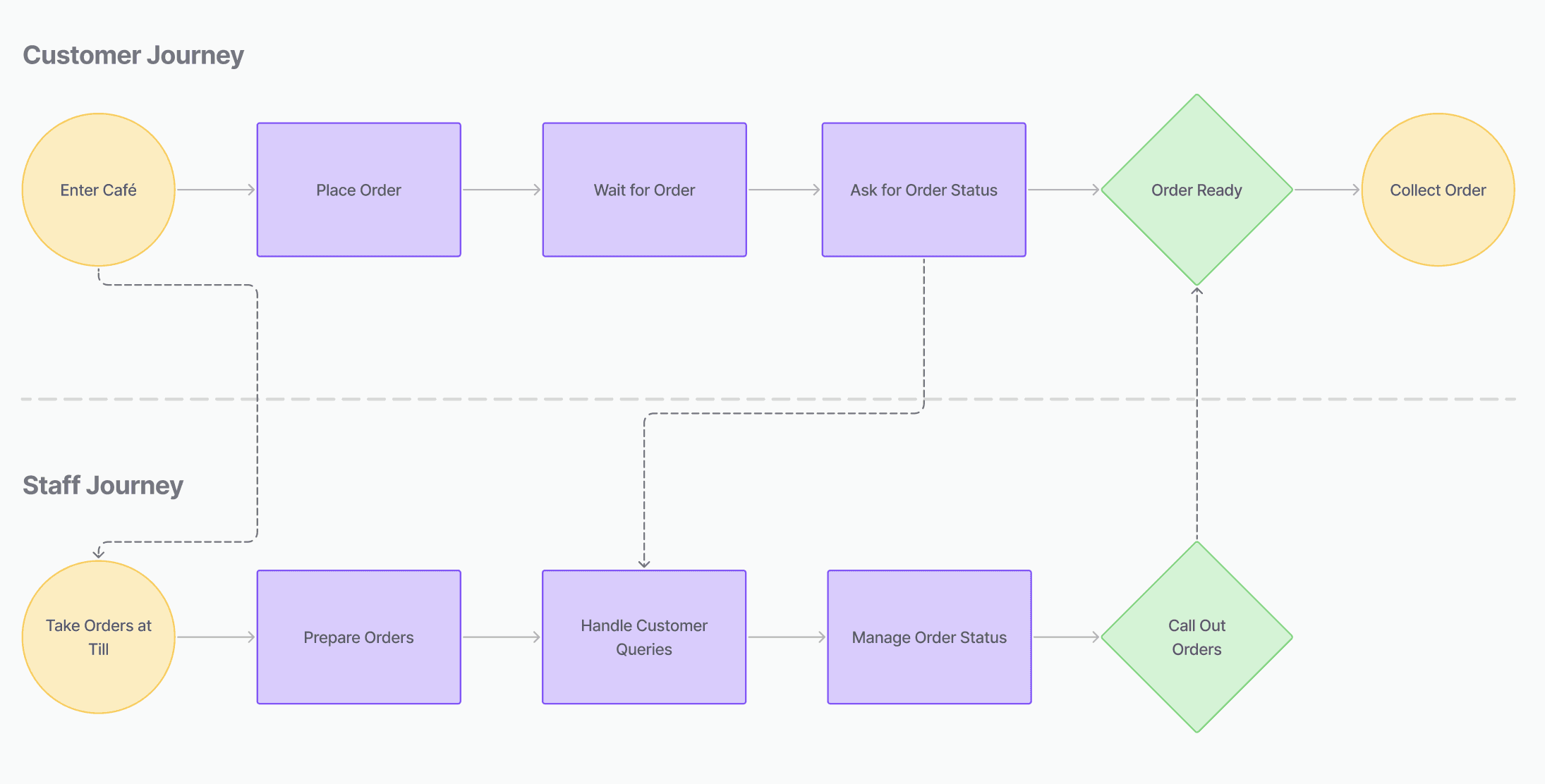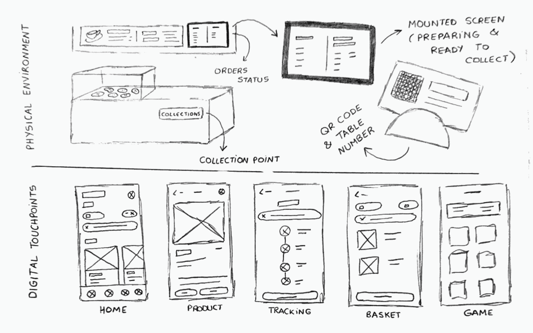 Customers didn’t know when or where their food would be ready, while staff were constantly interrupted with questions. This slowed service, caused stress, and made the café experience less enjoyable. With this in mind, my problem statement was: How might we give customers more visibility over their orders while reducing interruptions for staff?